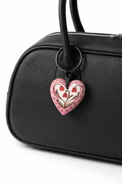 Ciondolo a forma di cuore realizzato e dipinto a mano con la tecnica dell’ingobbio in ceramica di Grottaglie. Pezzo unico.